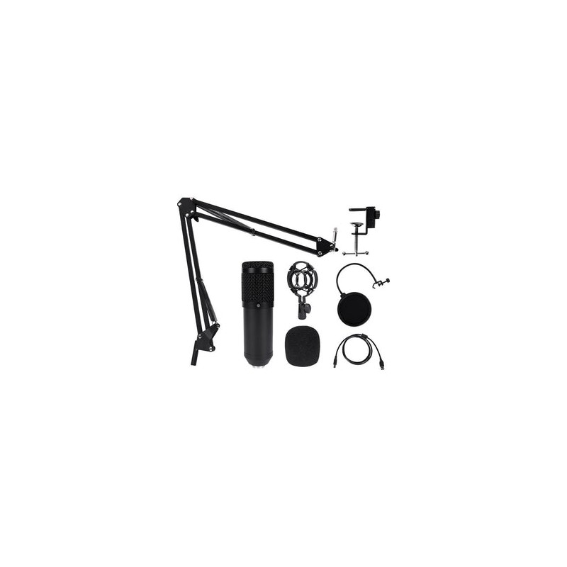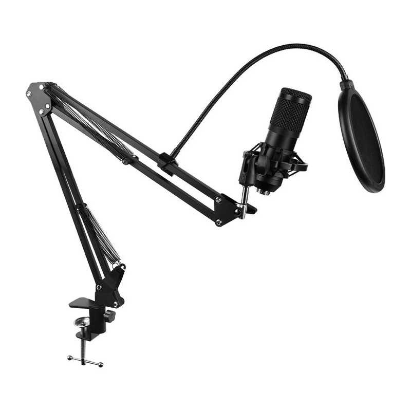 Reviews,MICROFONO CONDENSADOR USB UNIDIRECCIONALCalidad de audio profesional. Soporte de brazo. Filtro anti-pop. 360° de rotación. Compatible con Windows y macOS.ESPECIFICACIONESPuerto XLR: SíGrados de inclinación: 180°Grados de rotación: 360°Materiales: ABS + MetalMICROFONOPatrón polar: Unidireccional (cardioide)Sensibilidad: 34 ± 3 dBImpedancia: 160ΩFrecuencia de respuesta: 20 Hz - 20 KHzProfundidad de bits: 16 bitTasa de muestreo: 48 KHzNivel de presión sonora: 130 dbFiltro antipop: SiCONDENSADORCantidad: 1Tamaño: 1.8 cmCABLE PRINCIPALConector: USB B (Removible) - USB AVersión: USB 2.0 (480 mbps)Longitud (cm): 150 cmMaterial: PlásticoBRAZOAjustable: SiMaterial: Aleación de aluminioCOMPATIBILIDADWindows / macOSPESO Y DIMENSIONESDimensiones brazo: 40 x 12 x 2 cm Dimensiones micrófono: 42 x 42 x 150 mmPeso: 209 g (970 g con soporte)(DRC)