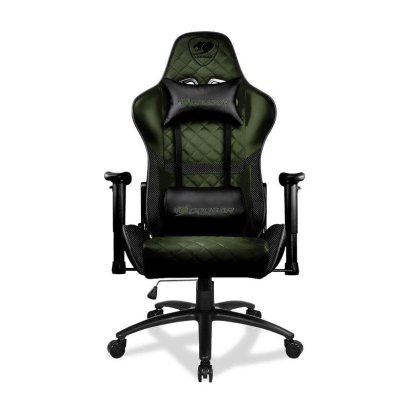 Reviews,COMODIDAD INIGUALABLECOUGAR Armor One te trae la comodidad que necesitas para disfrutar completamente de largas sesiones de juego. Completamente ajustable y con materiales de primera calidad, esta silla de juego te trae también el diseño característico de COUGAR, que se ha convertido en sinónimo de la pasión por el juego.DISEÑO ENVOLVENTE CON RESPALDO ALTODotada de un diseño ergonómico creado especialmente para garantizar comodidad durante el juego, Armor One ha sido creada para proporcionar un soporte fiable y cómodo para tu cuerpo, minimizando la tensión en la zona lumbar y permitiéndote rendir al mejor nivelAJUSTE DE ALTURAFácil y cómodo de usar, un elevador de pistón te permite ajustar la altura de la sillaCALIDAD Y FIABILIDADArmor One es tan sólida como su nombre indica, y ha sido creada con los mejores componentes para garantizar no sólamente que durará mucho tiempo, sino también que podrás utilizar de un modo seguro todas sus características.ESTRUCTURA DE ACEROEl esqueleto de Armor One está hecho de acero, garantizando durabilidad a largo plazo y proporcionando un gran soporte para tu cuerpoESPECIFICACIONES CARACTERÍSTICASTipo de respaldo: Respaldo acolchadoCantidad: 1Color de Respaldo: VerdeMaterial del respaldo: Imitación pielAjuste de la inclinación: SiReposabrazos ajustable : SiReposabrazos: SiBackrest angle range: 90 - 180°Armrest type: Descansabrazos acolchadoRespaldo ajustable: SiTipo de producto: Silla para videojuegos de PCTipo de asiento: Asiento acolchadoPlataformas de juego soportadas: UniversalClase del cilindro de gas: 4Material del asiento: Imitación pielRueda de reenvio: SiMaterial del marco: AceroColor del asiento: VerdeNúmero de ruedas: 5 rueda(s)Peso máximo del usuario: 120 kgTranspirable: SiDiseño de plancha ergonómico: SiERGONOMÍAAlmohada lumbar: SiAltura del asiento ajustable: SiAnti-vuelco: SiPlataforma de vuelo/volante de carreras incluido: NoPESO Y DIMENSIONESAltura del respaldo: 83 cmAncho del respaldo: 55 cmGrosor del asiento: 12 cmProfundidad del asiento: 57 cmAltura del reposabrazos (mín.): 64 cmAltura del asiento (máx.): 48 cmAltura del asiento (mín.): 39 cmAnchura del asiento: 53 cmAltura del reposabrazos (máx.): 70 cmPeso: 21 kg