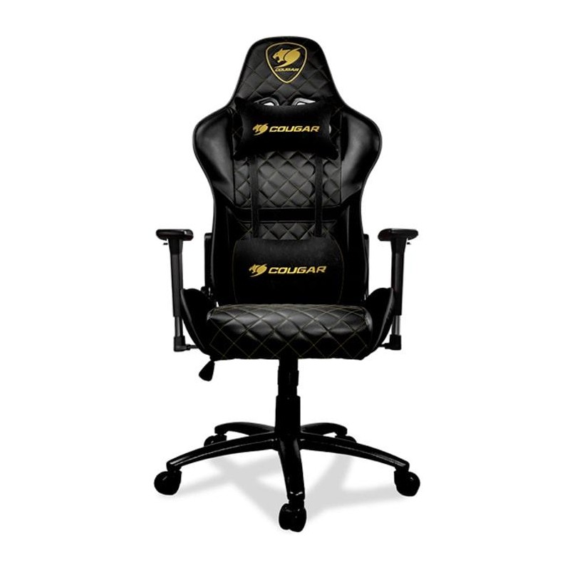 Reviews,Soporta 120 Kg, con una superficie de cuero PVC transpirable, altura ajustable con pistón clase 4 respaldo reclinable hasta 180° y reposabrazos ajustable 3D.COUGAR Armor One Royal te brinda la comodidad que necesitas para disfrutar a fondo de largas sesiones de juego. Totalmente ajustable y hecha de materiales de primera calidad, esta silla gamer también cuenta con el diseño único de COUGAR que se ha convertido en un signo de la pasión por los juegos.Peso Máximo soportado: 120 KgTalla: MedianaMateriales: Cuero de PVC transpirableMaterial de la base: AceroReposabrazos ajustables: 3D (Ajuste de altura, ajuste izquierdo/derecho, ajuste hacia atrás/hacia adelante)Tipo de mecanismo: Inclinación convencionalAjuste de la altura de elevación mediante pistónCilindro elevador de gas clase 4Ángulo de respaldo ajustable: 180 gradosNúmero de ruedas: 5 ruedasDIMENSIONESAncho, alto, profundidad: 53 x 143 x 63 cmPeso: 23 Kg| AL |