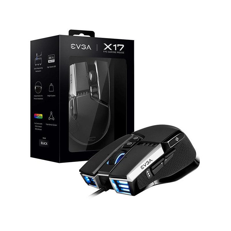 Reviews,EVGA te trae el primer mouse con triple sensor del mundo, con doble sensor de detección de elevación y un sensor óptico Pixart 3389 en el X17.ESPECIFICACIONESSistema de sensoresAceleración: 50 gDPI máximo: 16,000Velocidad de seguimiento: 400 ipsSensor principal: Sensor óptico PIXART 3389Tercer sensor: sensor de detección de distancia de despegueSensor secundario: Sensor de detección de distancia de despegueDISEÑOCable trenzado de 2 MNúmero de botones: 10Número máximo de perfiles: 5Tipo de pies: PTFE de baja fricciónColor del LED: Iluminación RGB de 3 zonas103 g sin cable. Personalizable hasta 128 gTipo de conmutador principal: Omron - Ciclo de vida de 50 millones de clicsMICRO PROCESADORNúcleo Arm Cortex-M33 de 32 bitsFormato de datos USB: 16 bits / ejeTasa máxima de sondeo / informe USB de alta velocidad: 8K HzDIMENSIONESAltura: 44.52 mmLongitud: 122.71 mmAncho: 70.27 mm