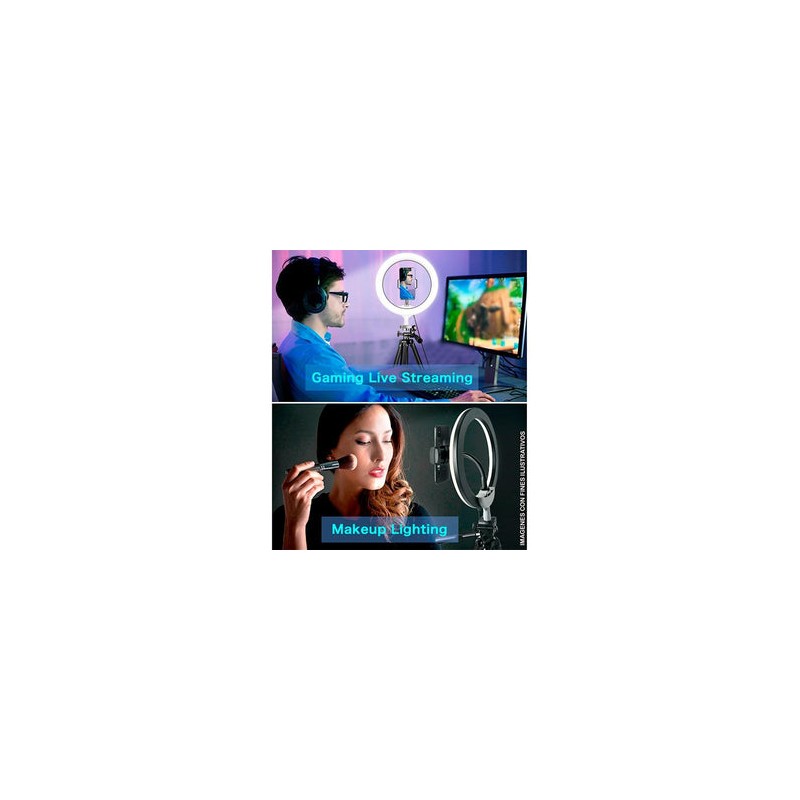 Reviews,¡Dale más vida a tus videos o streams con el LRG300 de GameFactor. El LED Ring 300 cuenta con 120 Leds ultra brillantes que le darán nueva luz a tu contenido!COMPATIBLEEl LRG300 se alimenta por un puerto USB, por lo que podrás conectarlo a tu computadora, laptop o incluso a un power bank para utilizarlo fuera de casa.LA LUZ IDEALElige entre los 10 niveles de intensidad y 3 temperaturas de color (Natural, Cálido y Frio) para lograr la iluminación perfecta.ALTURA AJUSTABLESu tripié incluído te permite colocarlo detrás de tu monitor, a un lado o donde mejor se acomode, necesitas más flexibilidad? en LRG300 es compatible con la mayoría de tripiés del mercado.ESPECIFICACIONESVoltaje: 5V cc 500 mAConector: USBMedida: Diámetro 10"Tripié: 50cmPotencia de salida: 18W máximoLongitud de cable: 1.5 m