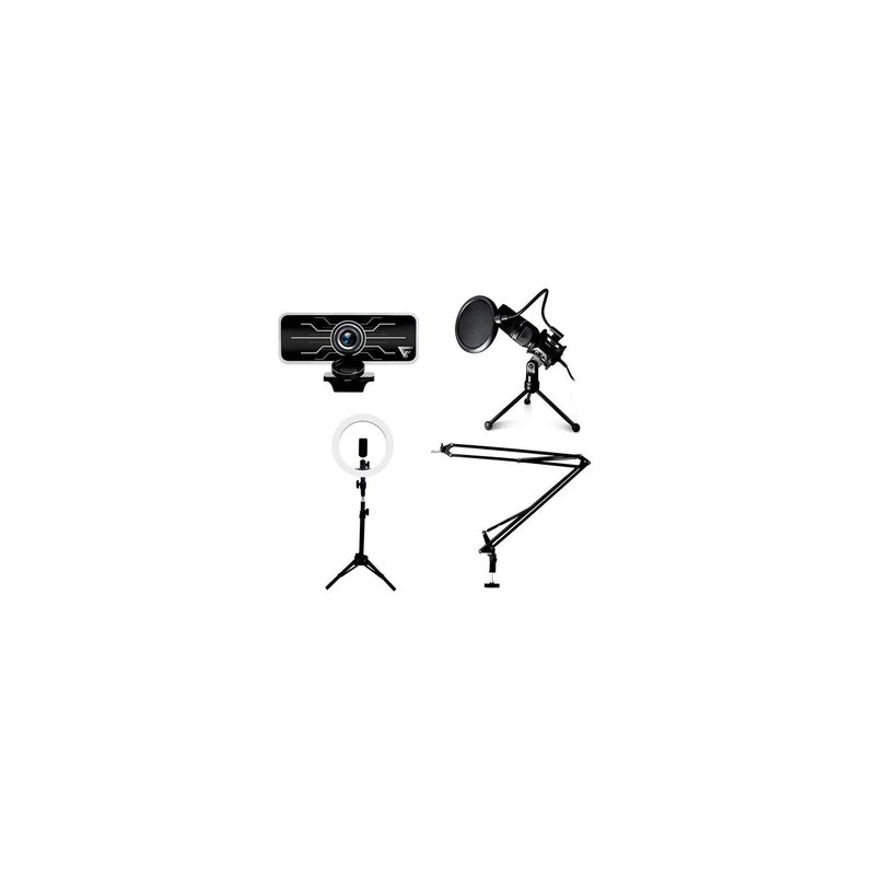 Reviews,Si buscas más que una excelente calidad a un súper precio, el KIT STREAMING de GAME FACTOR es para tí. INCLUYE: WEBCAM,MICRÓFONO,BRAZO PARA MICRÓFONO Y ARO DE LUZ¡Que te vean tal como eres! La webcam WG400 tiene una resolución Full HD de 1080p a 30 fps, por lo que tus contactos te podrán ver con gran calidad y detalle. Se adapta a cualquier pantalla o laptop gracias a su soporte ajustable de doble articulación con pads anti deslizantes. Su cable USB es de 1.5 m por lo que es ideal para laptops y desktops: También cuenta con un micrófono interno ideal para realizar video llamadas o grabaciones.Con el Plug and Play de la webcam, sólo conecta y listo, no necesitarás instalar drivers para comenzar a utilizar tu Webcam.No te conformes con jugar como pro, y verte como pro, también suena como todo un profesional con el MCG601 de GameFactor.Sabemos que quieres simplemente lo mejor, por ello el MCG601 incluye un filtro anti POP, una base aislante de vibraciones y un trípode con pies de goma. Comunícate con tus aliados, haz streaming, graba voces, música, podcast, entrevistas, audio para tus videos y mucho más con máxima calidad. El MCG601 es muy simple de utilizar, solo tienes que conectarlo a un puerto USB libre de tu equipo y ¡listo! No necesitas drivers ni costosas y complicadas interfaces de audio ni cables especiales.El stand para micrófono MAG500 de Game Factor es un robusto brazo fabricado en acero que coloca tu micrófono justo donde lo necesitas. Es fácil de instalar, no necesitas perforar tu escritorio, se puede montar en prácticamente cualquier escritorio de hasta 4.5 cm de grosor con su pinza universal.Complementa tu kit y dale más vida a tus videos o streams con el aro de luz LRG300 de Game Factor. El LED Ring 300 cuenta con 120 Leds ultra brillantes que le darán nueva luz a tu contenido. Puedes eligir entre los 10 niveles de intensidad y 3 temperaturas de color (Natural, Cálido y Frio) para lograr la iluminación perfecta.Su tripié incluido te permite colocarlo detrás de tu monitor, a un lado o donde mejor se acomode.ESPECIFICACIONESArtículo: WebcamRequerimientos: Puerto USB libre Interfaz: USBPlug and play: SíVoltaje: 5 V cc 0.18AMaterial: Polímero Reforzado (ABS)Conector: USB (A) 2.0Resolución: 1920 x1080FPS: 30 fpsMicrófono: SiCable: 1.5mCompatibilidad: Windows 7, 8, 10 omayor y OS XTipo de pantalla: Full HD / ledArtículo: Brazo para micrófono gamerSoporte máximo: 2kgMaterial: MetalMovimiento: 360°Apertura: 180°Rosca para micrófono: 3/8Adaptadores incluidos: 5/8, "1/4"Peso: 265gArtículo: Micrófono GamerVoltaje: 5 V cc 1 A Alimentación: USBSensibilidad: -47 DbImpedancia: 2.2K OhmsFrecuencia: 20Hz - 20 kHzTipo de Micrófono: CardioideReducción de Sensibilidad: -3dBCable: 1.7mPeso: 235g Artículo: Aro de luzVoltaje: 5V cc 500 mAConector: USBMedida: Diámetro 10"Tripié: 50cmPotencia de salida: 18W máximoLongitud de cable: 1.5 mColor: Negro Garantía: 1 Año directo con proveedorContenido del empaque: 1 WEBCAM, 1 MICROFONO, 1 BASE PARA MICROFONO, 1 ARO DE LUZ, MANUAL DE USUARIOMH