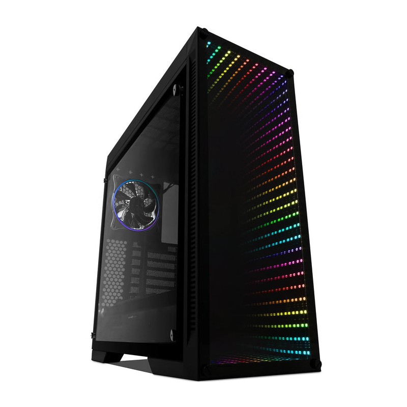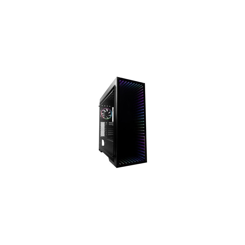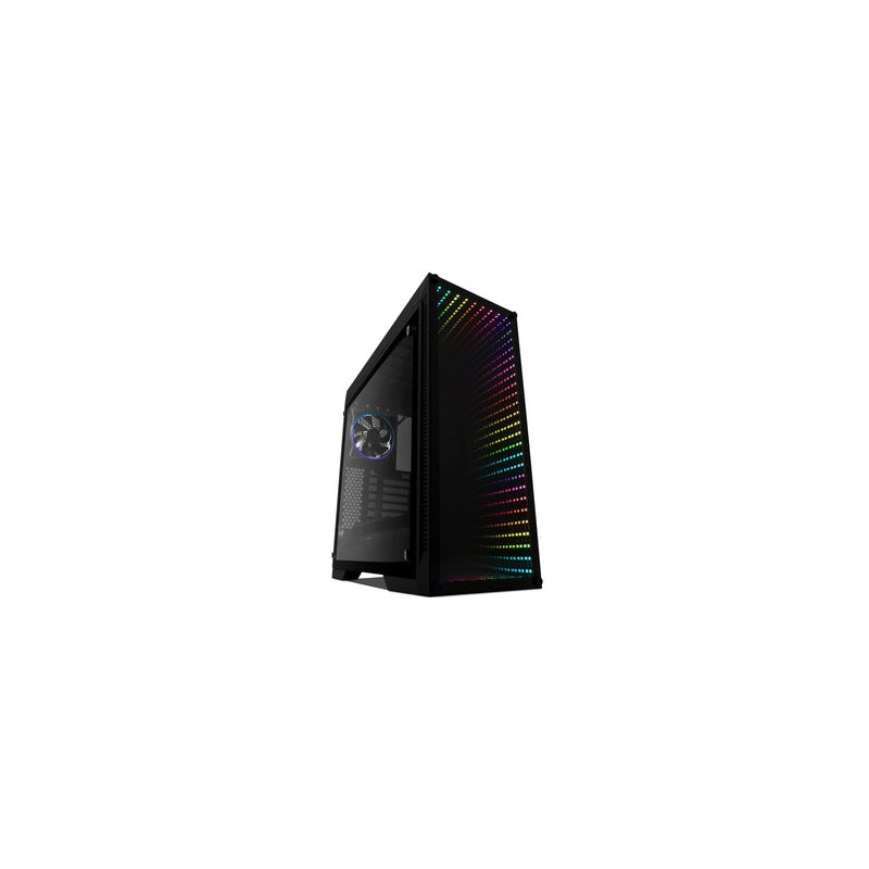 Descripción Especificaciones Reviews,Gabinete Gamer GAME FACTOR CSG601 INFINITYESPECIFICACIONESModelo: CSG601Artículo: GabineteTipo: GamerFactor: ATXTarjetas soportadas: E-ATX, ATX, Micro ATX, Mini ITXDisipador de CPU: Hasta 170mmSoporte para GPU: IncluidoPanel lateral: AcrílicoPanel frontal: Vidrio TempladoIluminación: Tira LED RGB, Infinity MirrorControl de iluminación: Integrado, 7 coloresSlots de expansión: 7Bahías 3½ ocultas: 2Bahías 5½ ocultas: 4Puertos superiores: USB 2.0 x2, USB 3.0 x2, Audio 3.5 mm x1, Micrófono 3.5 mm x1Slots ventilación: Trasero 120mm x1, Superior 120mm x3 / 140mm x2, Frontal 120mm x3Ventilación: Trasero 120mm LED x1Control ventiladores: Zona frontal x1, zona superior x1, Tarjeta para 4 ventidaladores RGB x1Filtros de polvo: Si, RemoviblesSlots para radiadores: 360mm x2, 120mm 1xFuente de poder: Soporta ATX (no incluida)Dimensiones: 210mm x 526mm x 515mmPeso: 9.2 KgCaracterísticas: Panel frontal InfinityMG