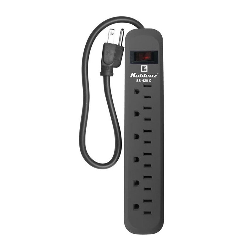 Reviews,SS-420 CLa corriente eléctrica además de tener variaciones constantes, tiene picos de energía que con corrientes de energía muy altas - aún en periodos cortos - dañan sus equipos.El supresor de picos Koblenz verifica la entrada de energía constantemente y cuando detecta un valor de corriente o voltaje alto los componentes especialmente diseñados dentro del supresor lo recortan o amortiguan dando a sus equipos una protección instantánea.Switch On / Off integrado que permite la recuperación rápida después de una sobrecarga, sin necesidad de reemplazar fusibles.Circuit breaker 10 Amp con función de reset para realizar el corte de corriente seguro en casos de sobrecarga o corto circuitos que pueden dañar sus equipos.6 contactos aterrizados distribuidos verticalmente.