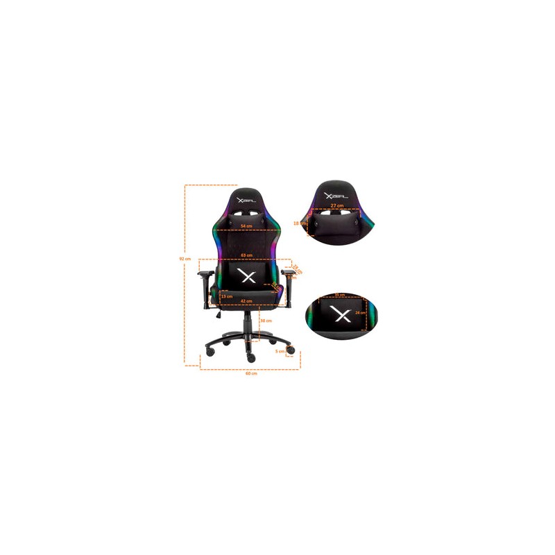 Reviews,RESPALDO180 grados de giro en el respaldo, acomódalo para la batalla.PISTÓNDe clase 4, de alto impacto, no importa el peso hasta 150kg.FOAMDe alta densidad para crear la ergonomía y comodidad perfecta.ESTRELLA5 soportes metálicos, totalmente resistentes para días y noches de partidas.BRAZOAjuste 4D en los brazos, giro y comodidad sin límites.CUERPOBase metálica de acero con soportes reforzados para mayor estabilidad.SOPORTESoporte lumbar y superior con memoria que se ajusta a tus movimientos.MATERIALMaterial textil en toda la silla para dar frescura a los días de partida.RGBSincroniza el RGB de tu silla con tu setup con su control incluido, configúrala y elige el RGB de tu agrado.ESPECIFICACIONESMaterial: TextilPeso máximo soportado: 150 kgPeso embalaje: 23.9 kgMedidas embalaje: 83 x 65 x 32 cm