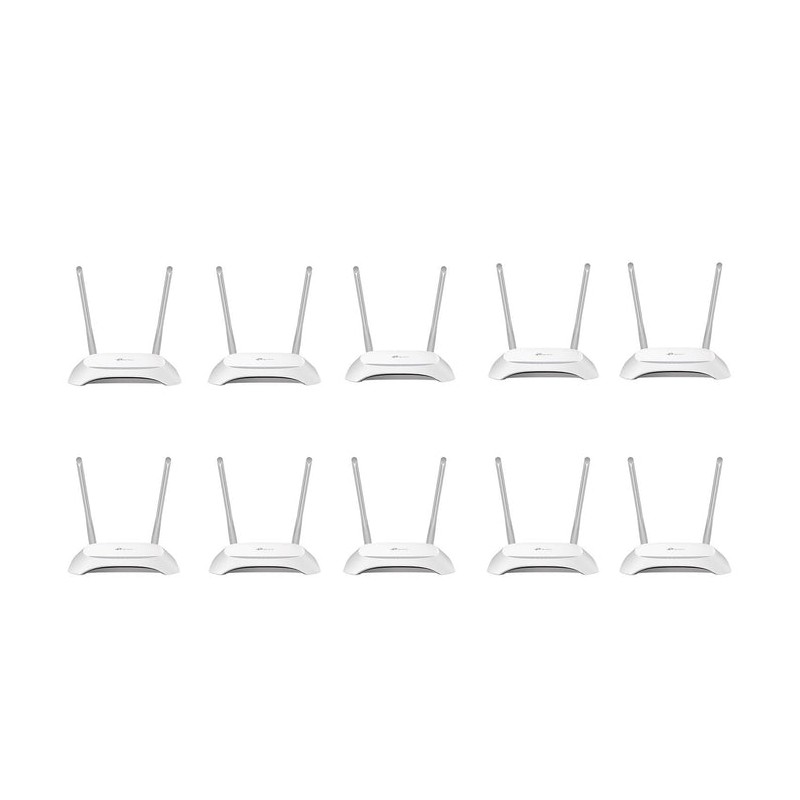 Reviews,Kit especial10 piezas Router Inalambrico TP-LINK TL-WR840N V6 N300 2 Antenas 5 dBiVERSIÓN DISPONIBLE: V6RÁPIDO, Wi-Fi TODOS LOS DÍASVelocidad inalámbrica de 300 Mbps - Velocidad de descarga rápidaTL-WR840N de TP-Link es una solución de alta velocidad que es compatible con IEEE 802.11b / g / n. Basado en la tecnología 802.11n, TL-WR840N brinda a los usuarios un rendimiento inalámbrico de hasta 300Mbps, que puede satisfacer sus necesidades de red hogareñas más exigentes, como la transmisión en alta definición, juegos en línea y la descarga de archivos de gran tamaño.MODO DE ENRUTADORConéctese a Ethernet para crear al instante una red inalámbrica privada y compartir el acceso a internet a todos sus dispositivos Wi-FiMODO PUNTO DE ACCESOTransforma tu red cableada existente a una inalámbrica.MODO EXTENSOR DE RANGOAumente la cobertura inalámbrica existente en su habitaciónFÁCIL CONFIGURACIÓN Y USOConfigure el TL-WR840N en minutos gracias a su interfaz web intuitiva y la poderosa aplicación Tether. Tether también le permite administrar su configuración de red desde cualquier dispositivo Android o iOS, incluidos los controles parentales y el control de acceso.ESPECIFICACIONESCARACTERÍSTICAS DE HARDWAREINTERFAZ4 10 / 100Mbps LAN PORTS1 10 / 100Mbps WAN PORTBotón: Botón WPS / RESETFuente de Alimentación Externa: 9VDC / 0.6AEstándares Inalámbricos: IEEE 802.11n, IEEE 802.11g, IEEE 802.11bDimensiones (WXDXH): 7.2 x 5.0 x 1.4 in. (182 x 128 x 35 mm)Antena: 2 antenasCARACTERÍSTICAS INALÁMBRICASFrecuencia: 2.4-2.4835 GHzTASA DE SEÑAL11n: Hasta 300Mbps (dinámico)11g: Hasta 54Mbps (dinámico)11b: Hasta 11Mbps (dinámico)RECEPCIÓN SENSIBILIDAD270m: -68dBm @ 10% POR130M: -68dBm @ 10% POR108m: -68dBm @ 10% POR54M: -68dBm @ 10% POR11M: -85dBm @ 8% POR6M: -88dBm @ 10% POR1M: -90dBm @ 8% PORTRANSMITIR POTENCIACE: <20dBmFCC: <30dBmFunciones inalámbricas: Habilitar / Deshabilitar la Radio Inalámbrica, Puente WDS, WMM, Estadísticas InalámbricasSeguridad inalámbrica: 64/128 bits WEP, WPA / WPA2, WPA-PSK / WPA2-PSKCARACTERÍSTICAS DE SOFTWARECalidad de servicio: WMM, control de ancho de bandaTIPO DE WANIP dinámica / IP estática / PPPoE /PPTP / L2TPADMINISTRACIÓNControl de accesoGestión localGestión remotaDHCP: Servidor, cliente, lista de clientes DHCP, reserva de direccionesReenvío de puertos: Servidor virtual, activación de puerto, UPnP, DMZDNS: Dinámico DynDns, Comexe, NO-IPVPN: Pass-Through PPTP, L2TP, IPSec (cabecera ESP)Control de acceso: Control parental, control de gestión local, lista de host, horario de acceso, gestión de reglasSEGURIDAD DEL CORTAFUEGOSDoS, SPI FirewallIP Address Filter / MAC Address Filter / Domain FilterIP y MAC Address BindingProtocolos: Soporte IPv4 e IPv6Red de invitados: 2.4GHz Guest Network x1OTROSProceso de dar un título: CE, RoHSCONTENIDO DEL PAQUETERouter inalámbrico N TL-WR840NUnidad de fuente de alimentaciónCable EthernetGuía de instalación rápidaRequisitos del sistema: Windows 2000 / XP / Vista ™, Windows 7, Windows 8, Windows 8.1, Windows 10 o Mac OS o sistema operativo basado en LinuxAMBIENTETemperatura de funcionamiento: 0~40 (32~104)Temperatura de almacenamiento: -40 ~70 (-40~158)Humedad de funcionamiento: 10%~90% Humedad de almacenamiento: 5%~90%PESO Y DIMENSIONESPeso del paquete 10 kgLargo 100 cmAncho 20 cmAltura 20 cm(DO)