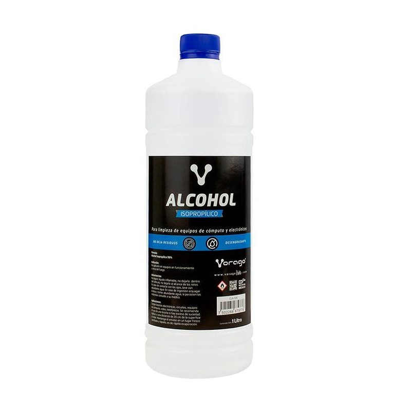 Reviews,Con el Alcohol Isopropílico CLN-108 garantiza una concentración de alcohol sin cambios, adecuado tanto para limpieza de hardware, como para componentes eléctricos y electrónicos.No deja residuos : Debido a su alta volatilidad, la zona de aplicación quedará sin impurezas.Aplicación directa : Facilidad de uso, se recomienda un paño o brocha para una limpieza eficaz.ESPECIFICACIONESFórmula: Alcohol Isopropílico 99%Indicación: No aplicarlo en equipos en funcionamiento y cerca del fuego.Aplicaciones : Limpia tarjetas electrónicas, circuitos, equipos de cómputo, video, telefónicos. Se recomienda el uso de una brocha si hay exceso de suciedad. Aplicar a una distancia de 20 cm de la superficie a tratar. Mantenga el envase en un lugar fresco ventilado y tapado, es de rápida evaporación.Advertencias : No ingerir, liquido inflamable, no dejarlo dentro del vehículo, no dejarlo al alcance de los niños. En caso de contacto con los ojos, lave con abundante agua. En caso de ingestión enjuagar la boca y tomar abundante agua, si persisten las molestias consulte a su médico.