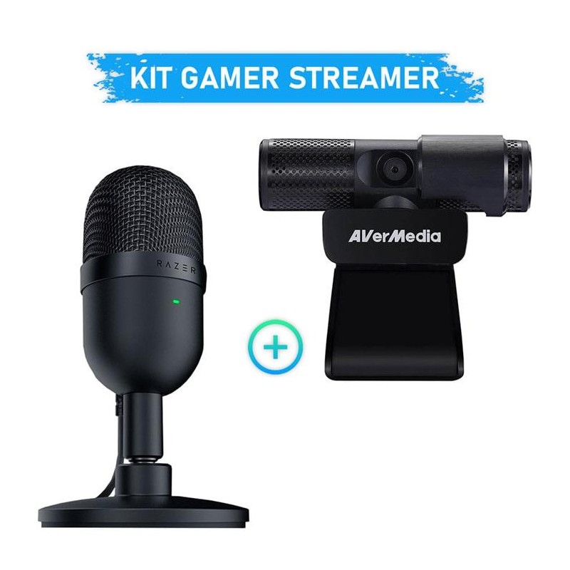 Reviews,KIT LIVE STREAMERConsigue que tus live streams sean un éxito con el Kit Streamer, ideal para aquellos que inician en el streaming. Cuenta con un micrófono profesional y cámara web Full HD, ofreciéndote lo necesario para brindar un contenido de alta calidad.CALIDAD DE GRABACIÓN PROFESIONALConoce el Razer Seiren Mini, un micrófono de condensador ultracompacto que se adapta perfectamente al audio de calidad profesional con cualquier configuración de transmisión o videollamada.COMPARTE TUS MOMENTOSLive Streamer CAM 313 es una webcam plug and play USB que permite grabar en 1080p30 para podcasting, streaming y juego, capturando los mejores detalles para su streaming o video blogs. Gracias a su giro de 360° hace que las grabaciones sean más sencillas desde cualquier ángulo.ESPECIFICACIONESMICRÓFONOFrecuencia de muestreo: Mínimo 44,1 kHz / máximo 48 kHzTasa de bits: 16 bitsCápsulas: Cápsula de condensador Ø 14 mmPatrones polares: SupercardioideRespuesta frecuente: 20 Hz – 20 kHzEnergía requerida: 5 V 500 mA (USB)Sensibilidad: 17,8 mV / Pa (a 1 kHz)WEBCAMTipo: Webcam USB 2.0 FHDTamaño del Cable: 1.5m Sensor de Imágen: 1/2.7" Sensor CMOS, 2MPMétodo de enfoque (Tipo de Lente): Enfoque fijoDistancia de trabajo: 40 cm - 100 cm (1.31 pies - 3.28 pies)Requerimiento: Windows 10 / 8.1 / 7 o superior | Mac OS 10.6 o superior | Puerto USB 2.0(DRC)