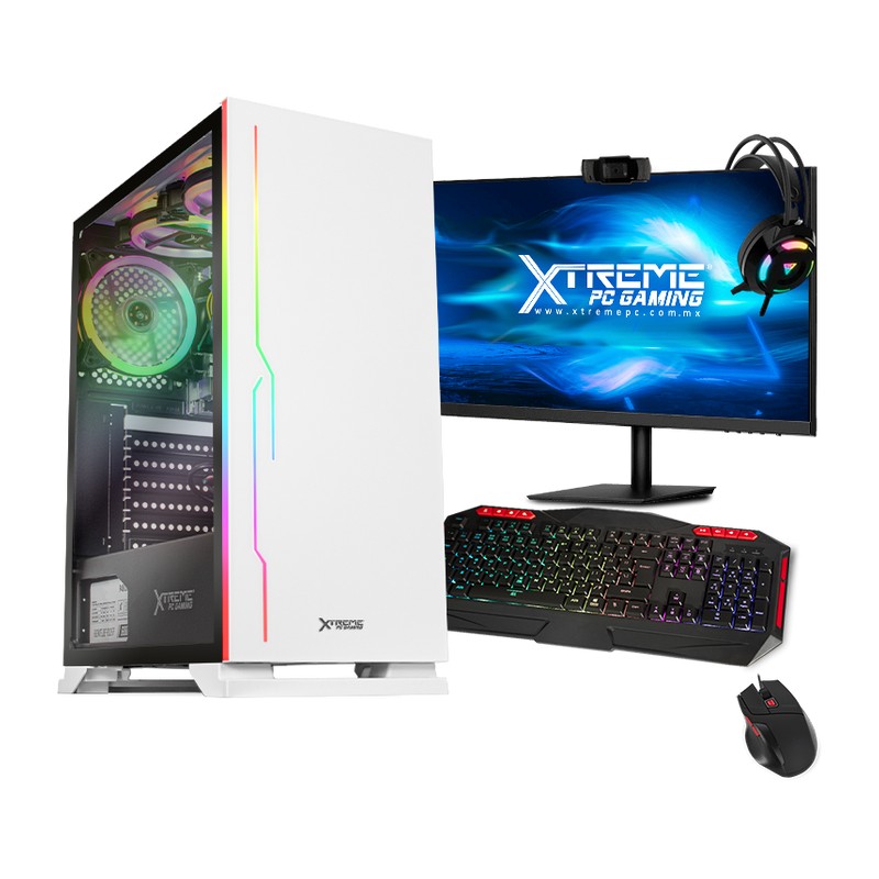 Reviews,Gráficos Intel UHD 630 proporcionan un rendimiento rápido, sin interrupciones y fluido.MONITOR 23.8” Full HD 5msPantalla LCD que presenta biseles estrechos en tres lados y una apariencia elegante, con una resolución de 1920 x 1080 píxeles y una pantalla IPS antirreflejo.KIT TECLADO MOUSE Y DIADEMAContiene un teclado gamer, un práctico mouse para juegos, y unos audifonos con efectos de iluminación únicos. ¡Este combo satisface todas las necesidades del juego!CAMARA WEBMicrófono de aislamiento de ruido incorporado, corrección automática de luz baja, Plug and Play, USB 2.0 de alta velocidad, el clip universal Tripod-Reade.ADAPTADOR WIFINo te preocupes por cables mantente conectado, te incluimos un adaptador WI-FI.PROCESADORIntel Core i3-10100 con 4 núcleos y 8 hilos 3.60 GHz de velocidad y 4.30 velocidad turbo con 6 MB Intel Smart Cache.MEMORIA RAM 8GB DDR4 frecuencia de 2400MHz se encargarán de darle a tu equipo la potencia y la fuerza para correr tus programas y juegos favoritosDISCO DURO MECANICO HDD 1TBGuarda todos tus juegos, música, archivos, fotos y programasFUENTE DE PODER 600W cumple además con estrictos estándares de calidad para asegurar un uso prolongado en tu sistema de cómputo.Tarjeta Madre Chipset Intel H410SISTEMA OPERATIVO: Windows 10 Versión para evaluación de componentes. No aplica garantía por software.Garantía directo con el proveedor 12 meses: No se hará valida la garantía si cuenta con daño físico y/o descargas eléctricas y se necesita empaque original de los componentes.