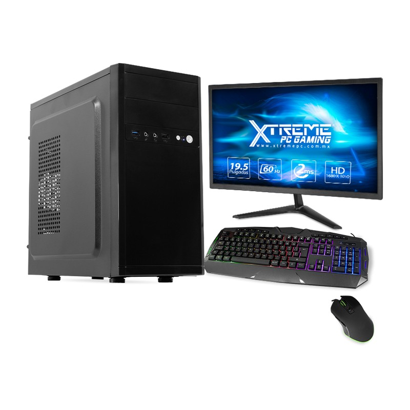 Reviews,Excelente equipo para tareas de Oficina, Estudiantes, Puntos de Venta o para tareas que requieren de un equipo suficiente optimizado para el día a día.Los gráficos HD Intel® frecuencia base 320MHz y frecuencia de impulso 600MHz, Ofrecen un rendimiento sorprendente y una excepcional calidad de imagen para mejorar prácticamente todo lo que haces.MONITOR HD 19.5”Descubra las funciones importantes que necesita para mejorar la productividad a diario con este monitor de 19,5" resolución máxima 1366 x 768 a 60Hz con tiempo de respuesta de 5ms.KIT TECLADO Y MOUSEEl Teclado Gamer alámbrico de membrana, cuenta con iluminación tipo arcoíris, será tu mejor aliado en las batallas. Mouse cuenta con iluminación tipo RGB y un diseño ergonómico.PROCESADORIntel® Celeron® N3050 que te brinda 2 núcleos y 2 hilos con 1.60GHz de velocidad base y frecuencia de impulso 2.16GHz con 2 MB Intel® Smart Cache.MEMORIA RAMEl procesador junto con la memoria RAM de 8GB 1600MHz DDR3L se encargarán de darle a tu equipo la potencia y la fuerza que necesitas.DISCO DURO MECANICO HDD 500GB SATA 3.5”Guarda todos tus juegos, música, archivos, fotos y programas.FUENTE DE PODERLa fuente de poder de 500W cuenta con un sistema de ventilación para facilitar el enfriamiento.TARJETA MADRE Chipset Intel® BraswellSISTEMA OPERATIVO: Windows 10 Versión para evaluación de componentes. No aplica garantía por software.