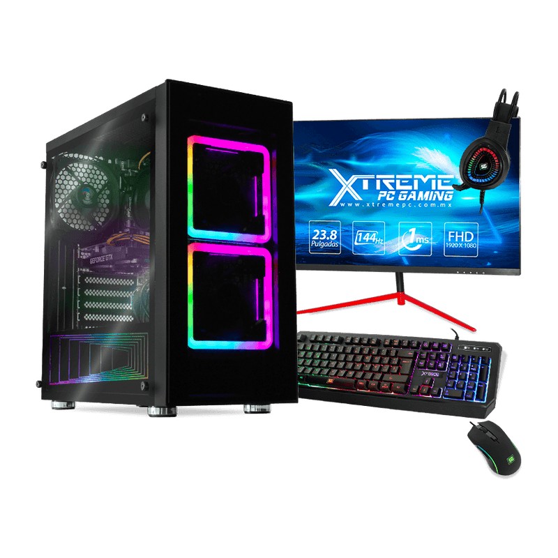 Reviews,Gráficos NVIDIA GeForce GTX 1650 4GB GDDR6, 896 CUDA Cores, 1650 MHz Boost Clock, Memory Bus 128-bit. Máximo 3 pantallas, DisplayPort 1.4 (x2), HDMI 2.0b, resolución de 7680 × 4320 @60Hz.MONITOR 23.8” FULL HD 1ms 144HzBusca aventurarte en una experiencia visual sin precedentes, te garantiza calidad visual y configuraciones de alto nivel.KIT TECLADO Y MOUSE GAMEREl kit gaming será tu mejor aliado para vencer las batallas más difíciles gracias al diseño ergonómico e iluminación que llevarán tu juego a otro nivel, mejorando la experiencia en el campo de batalla.ADAPTADOR WIFINo te preocupes de los cables, adaptador WiFi incluido hasta 150Mbps.PROCESADORAMD Ryzen 5 3600 con 6 núcleos y 12 hilos 3.6 GHz de velocidad y 4.2 velocidad turbo con 32 MB L3 en Cache, convirtiendo tu PC en una máquina para derrotar a tus oponentes.MEMORIA RAM 16GB DDR4 frecuencia de 3200MHz se encargaran de darle a tu equipo la potencia y la fuerza para correr tus programas y juegos favoritosUNIDAD DE ESTADO SOLIDO SSD 240GBDISCO DURO MECANICO HDD 1TBGuarda todos tus juegos, música, archivos, fotos y programasFUENTE DE PODER 400W Alta Eficiencia cumple además con estrictos estándares de calidad para asegurar un uso prolongado en tu sistema de cómputo.Tarjeta Madre CHIPSET AMD A320SISTEMA OPERATIVO: Windows 10 Versión para evaluación de componentes. No aplica garantía por software.Garantía directo con el proveedor 12 meses: No se hará valida la garantía si cuenta con daño fÍsIco y/o descargas eléctricas, se necesita empaque original.